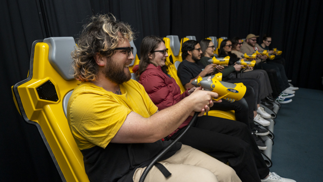 Virtual reality at its best! The Internationally award winning XD Dark Ride immerses you in a massive curved silver screen. It’s a world-first to blend a competitive, interactive, and reactive game into a dynamic motion ride. State-of-the-art theatre combines stunning visual effects and sound technology while creating the sensations of falling, jumping and crashing in one thrilling attraction ride. Grab the world’s fastest targeting lasers and defend yourself in a haunted house infested with zombies, menacing aliens in a subway or robot cowboy outlaws in the Wild West. In crystal-clear VR, you’ll never have more fun!